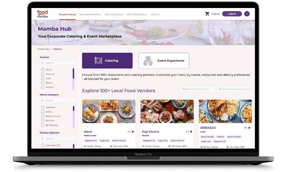 Our platform makes it easy to browse menus, compare vendors, and build an experience that fits your team’s culture, size, and budget — all in one place.
