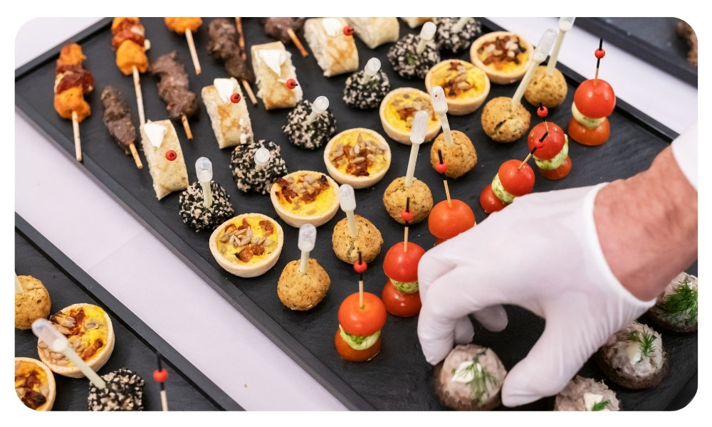 - Buffet meals, plated dinners, and finger foods