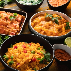 A 100% halal, full-service caterer offering South Asian, Mediterranean, and Western cuisines, with menu items like chicken biryani, butter chicken, grilled kebabs, pasta dishes, and fresh salads.