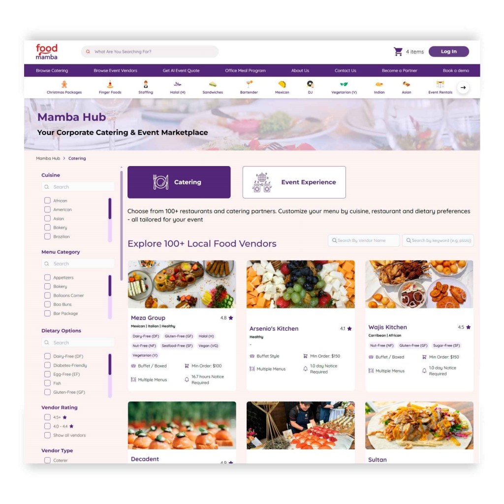 3. How many catering vendors are available on Food Mamba?